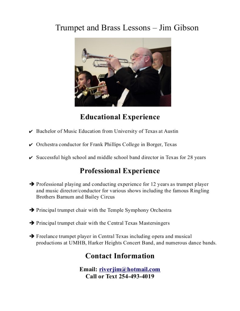 Opportunities for any student of brass can benefit from time spent, in Johnny’s guided instruction.