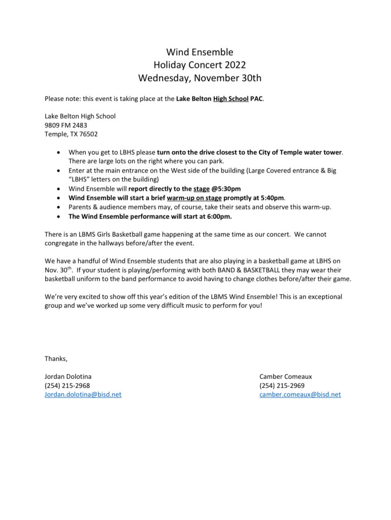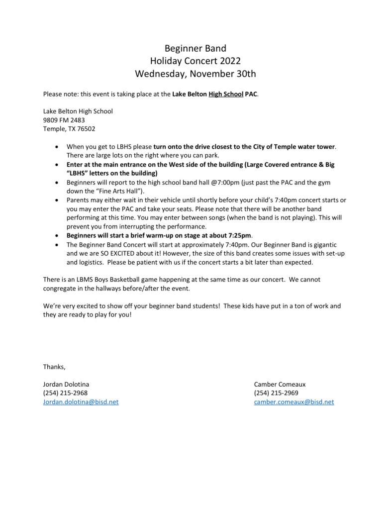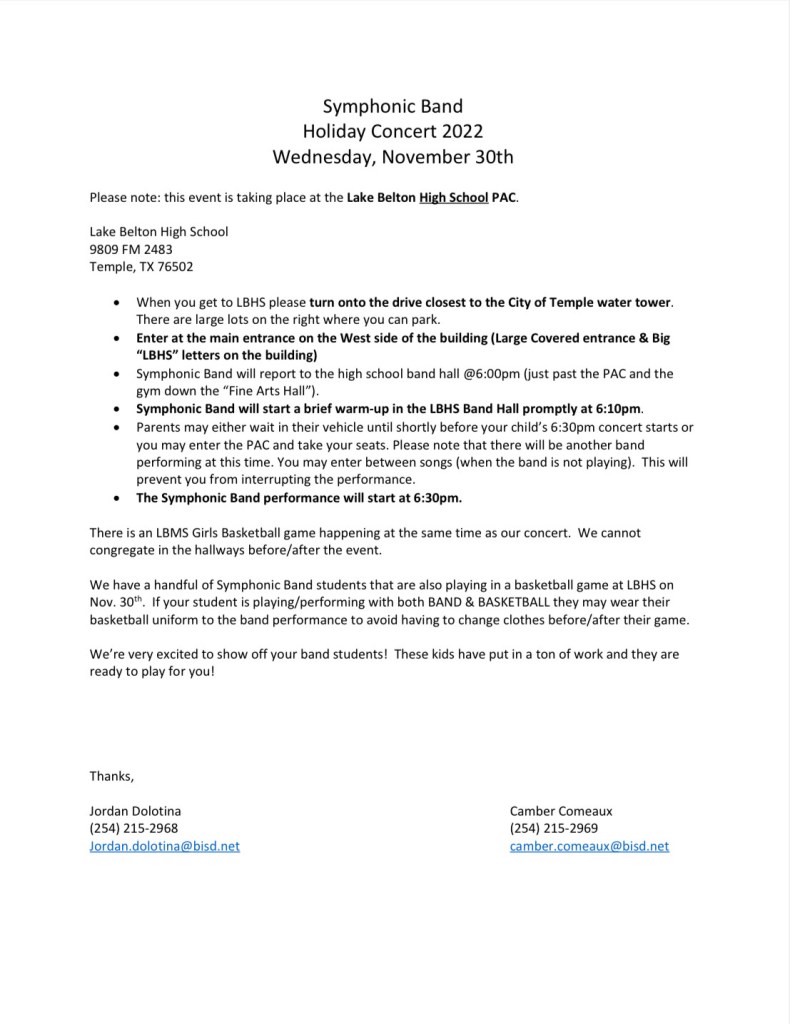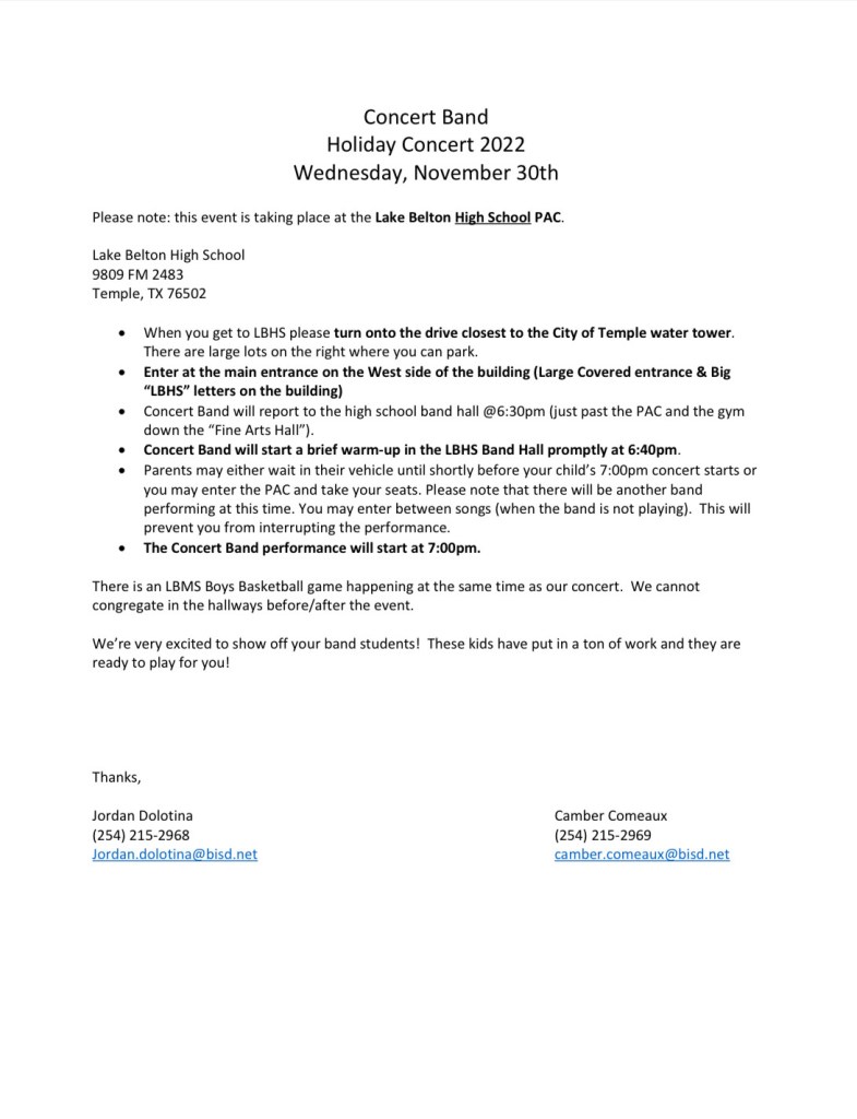 11/30 – Concert Details November 16, 2022 lbmsband Please scroll down and find the correct document for your band student Share this: Share on X (Opens in new window) X Share on Facebook (Opens in new window) Facebook Like Loading... Related Published by lbmsband View all posts by lbmsband