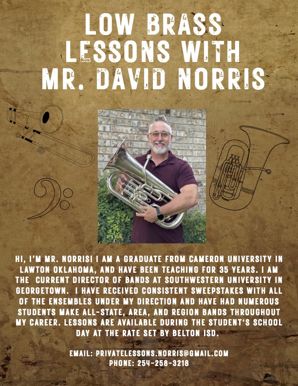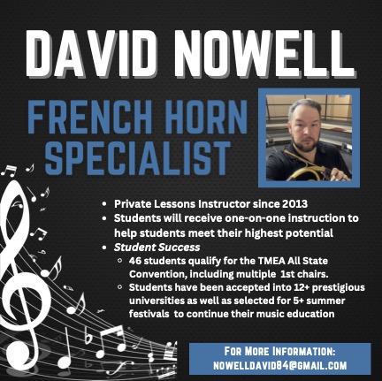 Private Lessons are the fastest way our students improve on their instrument. We have an amazing private lessons staff available to our students that work with them one-on-one to help them reach their musical potential. Each private teacher will design an instruction sequence and program tailored to your student’s individual needs, allowing each student to progress at his/her own rate of ability. Professional lesson teachers on each instrument will be available to teach during band class or outside of the school day. Lessons are charged at a rate of $25 per 25-minute lesson (half of the class period), and fees are paid directly to the lesson teachers. Students enrolled in private lessons usually make All-Region Band, earn first division superior ratings on solos, and sit at the top of their section. Private lessons are vital to any quality band program. Private Lessons are highly encouraged for students in the Symphonic Band and Beginner Band. Students that are enrolled in the Wind Ensemble are REQUIRED to take private lessons. If there are financial concerns and your family requires any assistance please contact the band directors. No student will be removed from Wind Ensemble for financial reasons. We will find a way to get your student the 1-on-1 or small group attention that they deserve. Listed below are some of the many ways private lessons can benefit your student.