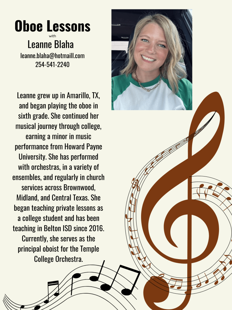 For over two decades, Kaylenn Henderson has dedicated their career to music education, with nine of those years focused on guiding private clarinet and saxophone students. Mrs. Henderson believes that a great lesson goes beyond scales and exercises; it’s about building a strong relationship with each student. By understanding their unique goals and challenges, Mrs. Henderson helps them not only improve their playing but also develop confidence and a lifelong love for music. This approach has led to notable student achievements, including a Texas All-State musician. To learn more or to schedule a lesson, please contact me at trebleclefmom1@gmail.com